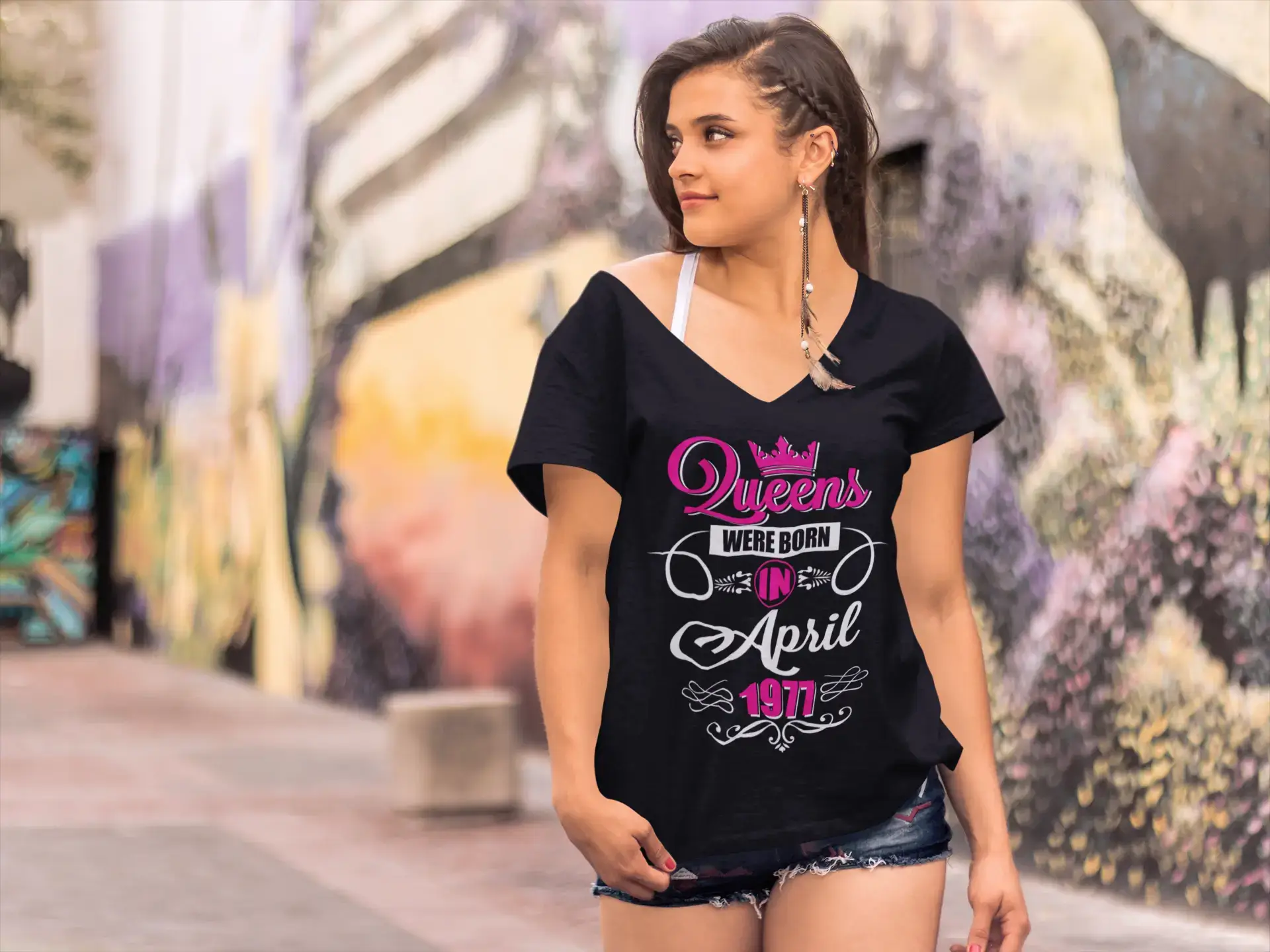 ULTRABASIC Women's T-Shirt Queens Were Born in April 1977 - 43rd Birthday Shirt for Ladies