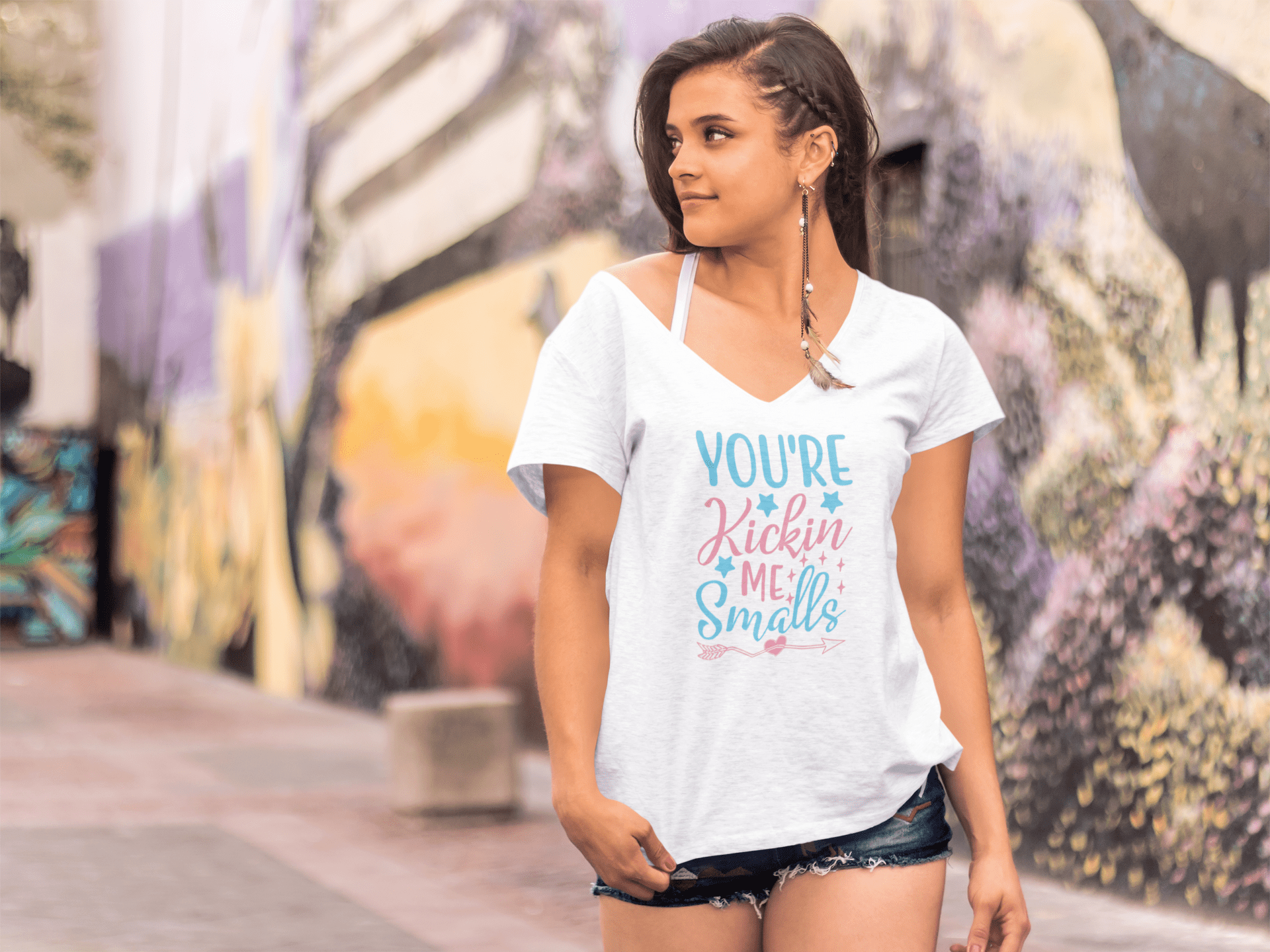 ULTRABASIC Women's V-Neck T-Shirt You're Kickin Me Smalls - Funny Short Sleeve Tee Shirt Tops