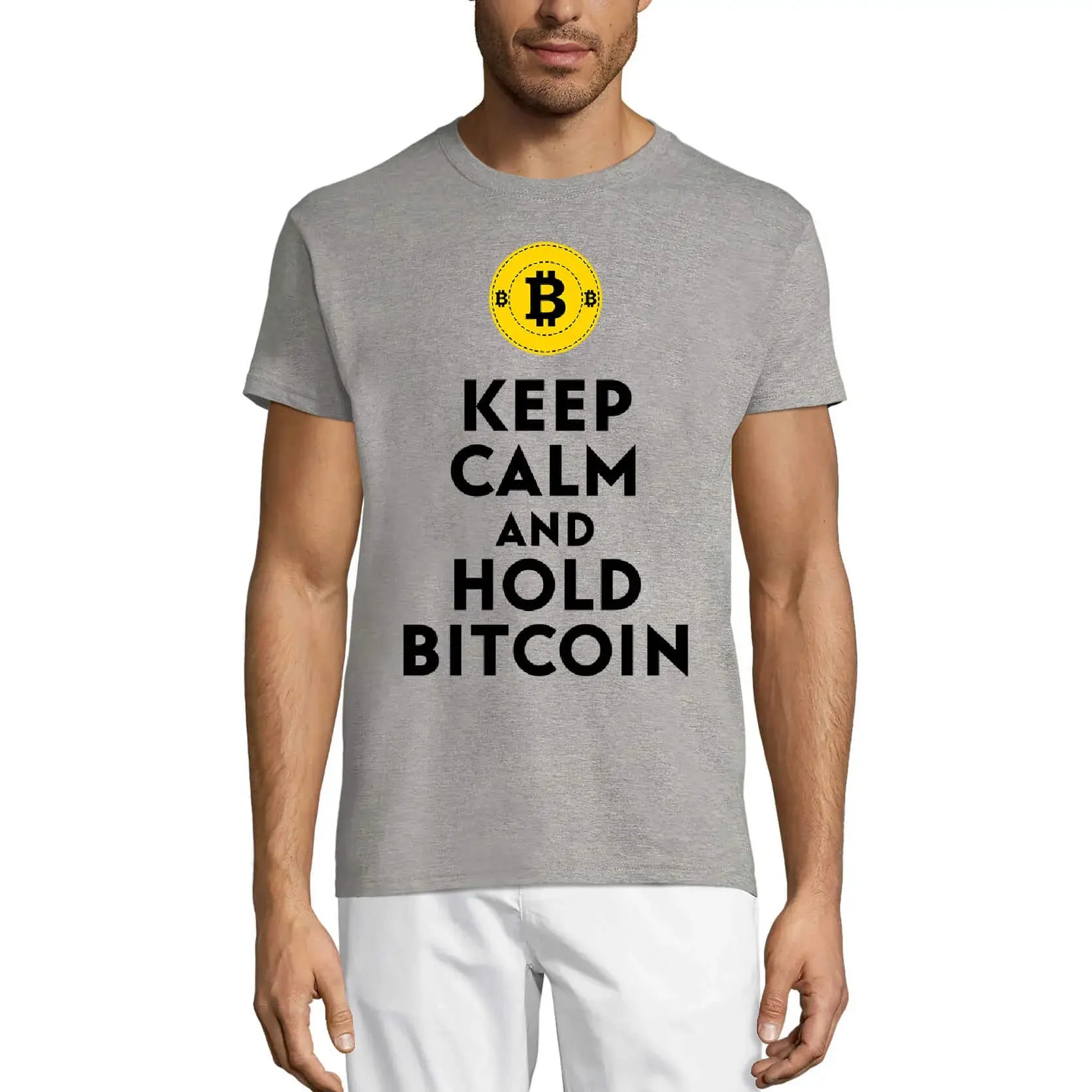 Men's Graphic T-Shirt Keep Calm And Hold Bitcoin Traders Quote - Crypto Mining Eco-Friendly Limited Edition Short Sleeve Tee-Shirt Vintage Birthday Gift Novelty